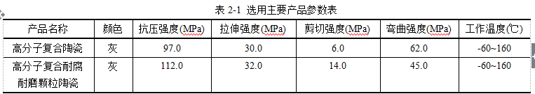 (1)高分子復(fù)合陶瓷是一種雙組份、高性能耐磨復(fù)合材料,主要成分是高強度金屬碳化物、碳化硅和堅硬球形小顆粒陶瓷,具有高強度、耐磨蝕和腐蝕性能,作為耐磨蝕和耐腐蝕保護基層被廣泛的應(yīng)用于各種化工設(shè)備及通用設(shè)備。適合應(yīng)用于管道、水泵殼體、葉輪等防腐耐磨大面積磨損修復(fù)。